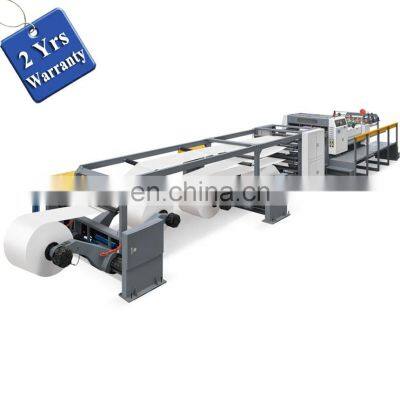 UCM1700A High Speed 2 Reel Corrugated carton Kraft Paper Roll to sheet Cutter Sheeter Machine (300cuts/min)VideosVideo demonstration only for referenceVideo (2 rolls): /watch?v=F39iZsYtey8Video (2 rolls): /watch?v=xThtgFvv-TEVideo (2 rolls): /watch?v=vBYSd4QU3gcVideo (6 rolls): /watch?v=ttnm7LbbmtMVideo (5 rolls): /watch?v=vjoWai_JQ5gProduct Description Description:Servo Precision high speed die cutting machine takes the advanced technology of Germany. The machine computer control system takes AC Servo motor and AC transducer. The conveyor belt takes NITTA from Japan. The pneumatic vibrator takes FINDEVA from Switzerland. The electrical system adopts SCHNEIDER & OMRON which leads to the speed of cutting paper much more fast and stable. Germany precise bearing and cutting knife assure the high cutting precision. The controller of soft-touch computer screen is simple and convenient to operate. The anti-curve rack assures the paper flat. This machine is the paper processing machine which is very popular in the paper making and printing industry. It can improve the efficiency and benefit of your work. Parameter: Model:UCM1100/1400/1700/1900ACutting Mode:Double rotary knifePaper Cutting Thickness: 60-550GSMCutting Precision:Cutting length≤1000mm: +/-0.5mm; Cutting length>1000mm: +/-0.1%Max Cutting Frequency:300 cutting stroke/minMax Cutting Speed:300m/minCutting Range: 450-1450mm(UCM1100A), 450-1600mm(UCM1400/1900A)Max Unwinding Diameter: 1500mm(UCM1100A), 1800mm(UCM1400/1900A)Max Paper Cutting Width: 1100mm/1400mm/1700mm/1900mmGross Weight: 9000kg/11000kg/13000Kg/15000Kg Features:1,High speed rotary cutting knife2, elimination system3, Middle slitting and waste collection system4, Automatic counting and label inserting device5, Paper transporting equipment6, Automatic paper trimming and collecting system7, Electric control unit8, Double arm oil hydraulic shaftless mill roll stand9, Automatic paper tension controller10, Automatic vacuum system11, Web guiding system12, Photo senor registration tracking system13, LCD control panel14, AC servo motor Detailed Images Machine Description:1,Shaftless Mill Roll Stand 2, Web Guiding System (Optional)3, Photo Sensor Tracking Registration System For Printed Paper (Optional)4, Automatic tension controller5, Pneumatic Slitting System with Side Trimming (Optional)5, Anti-Curve System6, High Speed Rotary Cutting Section 7, Paper Delivery and Overlapping System8, Automatic Vacuum System 9, Label Inserter and Paper Stacker Service Team Pre-sale Service After-sale Service A: Inquiry and consulting support A: English manuel and video instruction B: Sample testing support. B: Your technians can get trained in my factoryC: Invoice and Contract confirmation. C: Engineers available for overseas if necessary FAQ1.Q: What information should i let you know if i want to get a quotation?A: What is your Max and Min product size in mm?B: What is your paper thickness in GSM?C: Some photos of your finished products2.Q: Are you a manufacturer?A: Yes we have been manufacturing such machines over 20 years and also we are a professional exporter. 3.Q: What about the payment term?A: Mostly 30%T/T in advanced, 60% when machine is finished after inspection and last 10% against copy of shipping documents..4.Q: What is the warranty?A: Two year warranty after sales (During the warranty period, we respond for free parts dispachment and the buyer is only required to cover the courier express once the machine has any problems. However we do not respond for the consumables and parts broken by mistakingly operation)5.Q: What is your aftersale service?A: Any questions will be responded within 24 hours by email, skype, phone call or Whatsapp/Wechat (+86-18258286679). In addtion, we have professional engineer available for overseas service..6.Q:What is the delivery time?A: Mostly it takes 10 to 30 workdays after receiving the deposit and confirming the drawing or samples as required. Certifications Packing & ShippingContainer Load and Transport Contact UsYOU ARE WELCOME TO CONTACT US ANYTIME AVAILABLE. Mobile/Whatsapp/Wechat: +86-18258286679 Email: utecs@ , utecsinter@ , danielsuer@ Skype: danielsuerWeb: