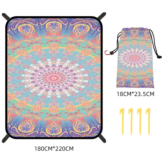 Waterproof Bohemian Beach Mat - Personalized Camping Blanket About this item Our sophisticated and attractive picnic mats are made of polyester pongee fabric, filled with 80gsm needle-punched cotton, and feature a 210d Oxford cloth PU backing material. The creative pattern design is fashionable and avant-garde, sure to impress family and friends when you have lunch at a picnic.