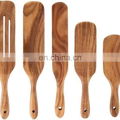 Wooden Spatulas 5 Pcs Cooking Utensils Spurtle Set Natural Teak Wood Kitchen Utensils Set Slotted Spatula Heat Resistant Slotte